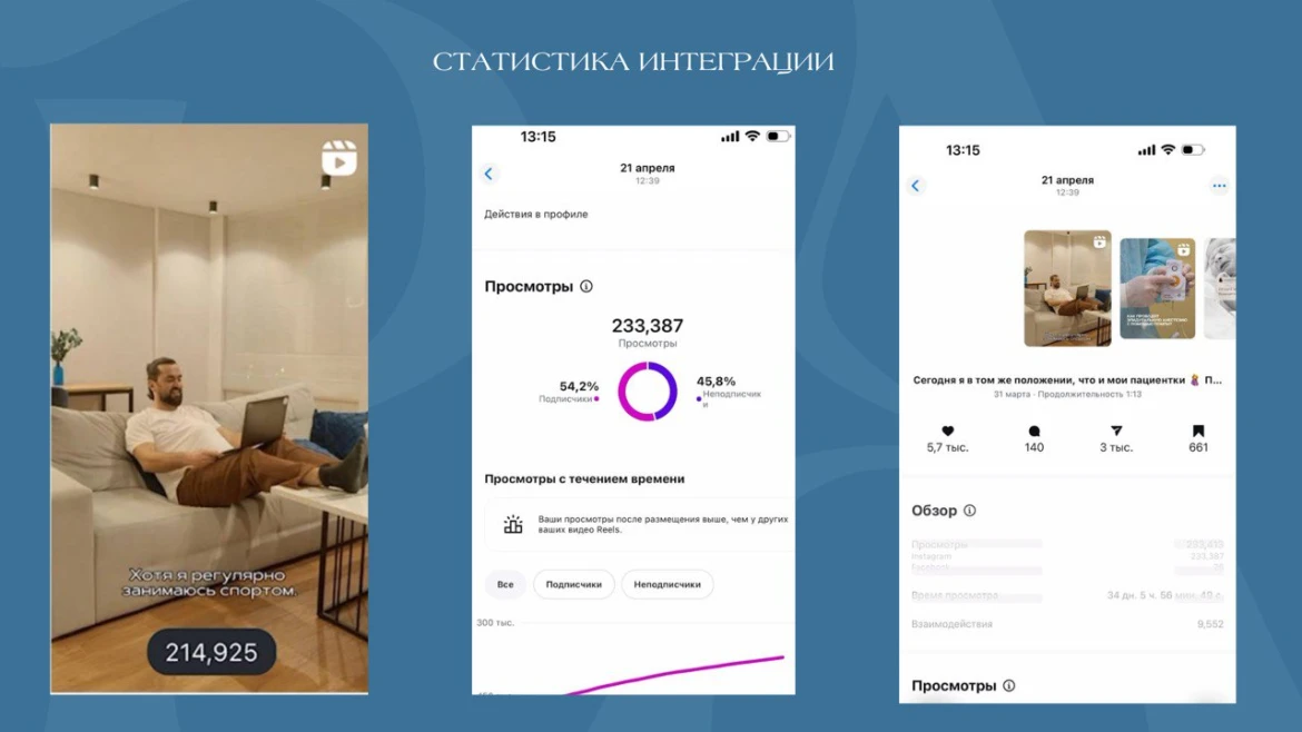 В процессе мы всегда корректировали ТЗ рекламодателей (с их разрешения) либо же создавали с нуля и нативно встраивали в контент Семена. Это помогло избежать просадки охватов на рекламе, получить хорошие клики и приходы в блог, а также усилить бренд клиента.